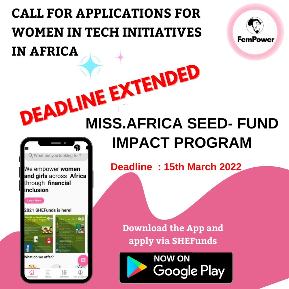 Call for applications for Miss.Africa Seed- Fund Impact programme has been extended to March 15th, 2022 following an overwhelming response in the last month.
