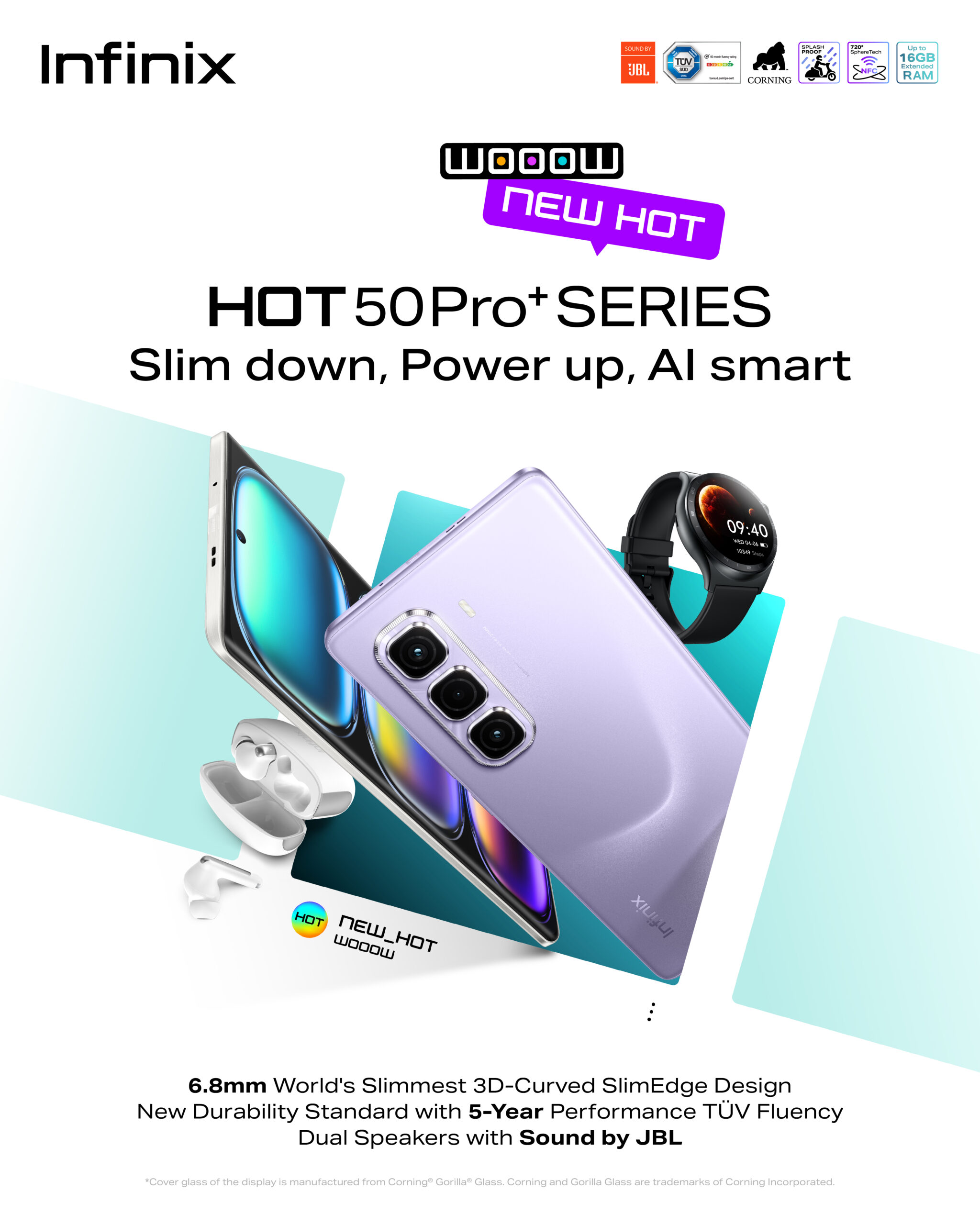 The phone comes with Titan Armor Protection, within the architecture and is powered by the Helio G100 chipset, the HOT 50 Pro+ delivers top-tier performance. Certified by TÜV SÜD for 60-month fluency, it ensures lag-free performance for up to five years. The IP54 certification protects the device from dust and splashes, while Wet & Greasy Touch Precision provides flawless control in challenging conditions. The 120Hz 6.78-inch AMOLED display, shielded by Corning® Gorilla® Glass, delivers vibrant visuals with double the scratch and impact resistance of standard screens.