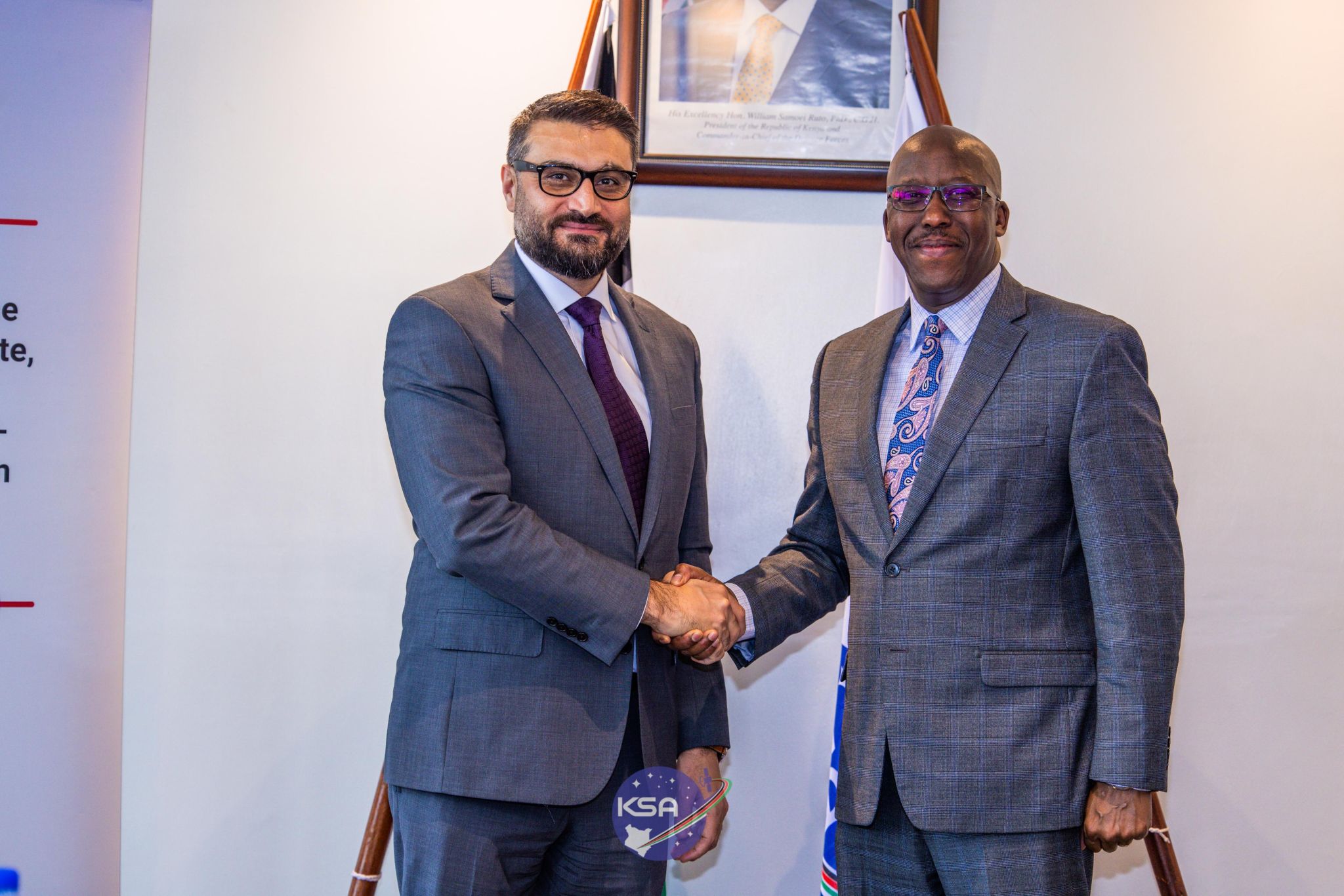 Kenya Space Agency (KSA) official, Director General Brigadier Hillary Kipkosgey shaking hands with Chief Executive Officer of Marlan Space, Dr. Hamdullah Mohib during a high level meeting in Nairobi in October 25, 2025. Credit:KSA