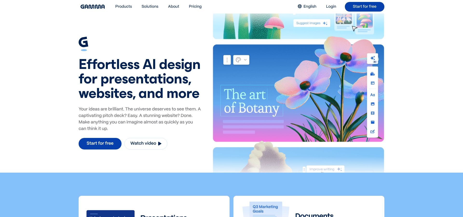 - Instant wow factor. Gamma selects striking images and balanced layouts that look client-ready on the first render.
