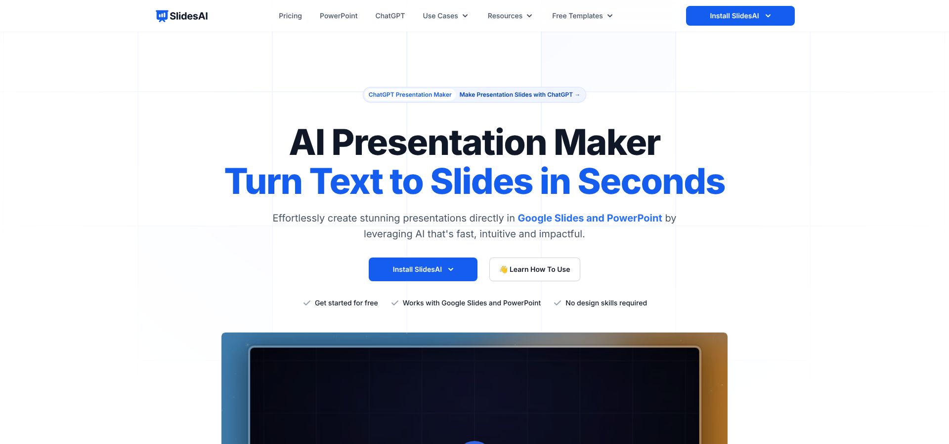 | SlidesAI | 3.5 | Yes | Low | 60-sec text-to-deck | Yes |
