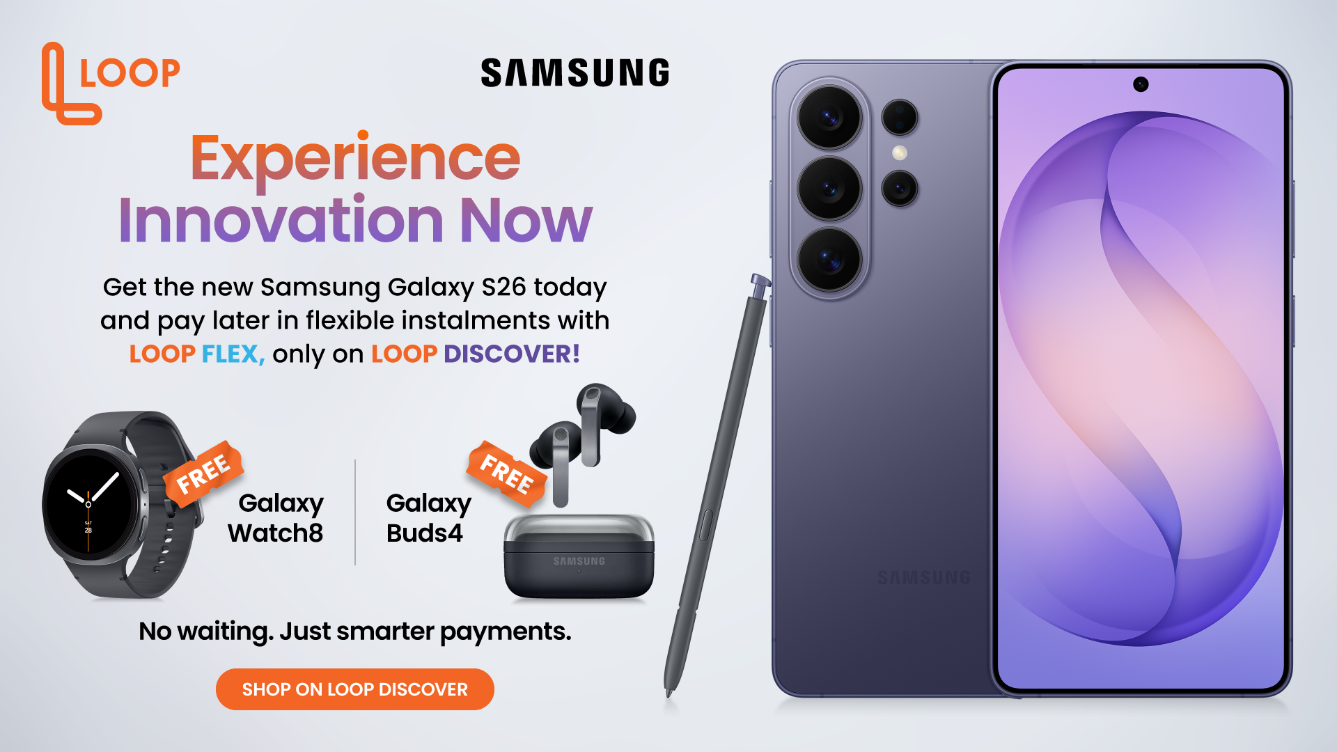 As part of the campaign, customers can purchase the Samsung Galaxy S26 via LOOP FLEX, the firm’s instalment-based financing product, and receive either a Galaxy Watch 8 or Galaxy Buds 4 through participating dealers such as Ropem Telcom.